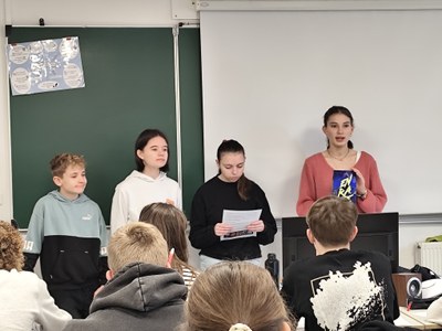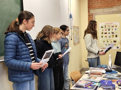 Les élèves de l'atelier lecture sont passés dans les classes pour présenter les livres du prix Lir'ado, qu'ils avaient eux-même sélectionnés avec le collège Yvonne Abbas. La promotion est donc terminée : tous les élèves du collège peuvent emprunter cette sélection de 10 romans, BD et mangas et pourront voter pour leur livre préféré au mois de mai.