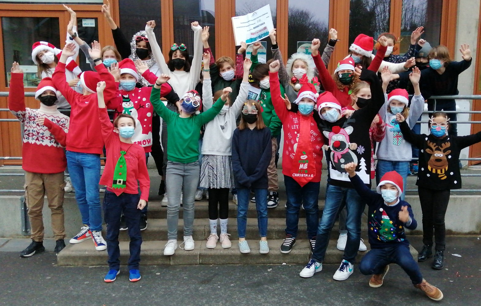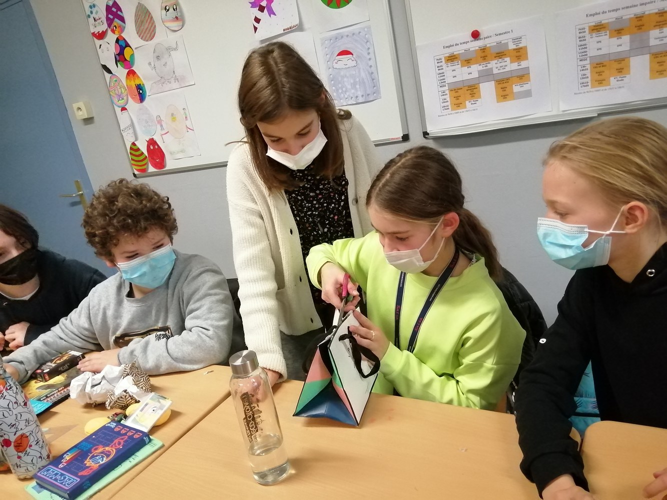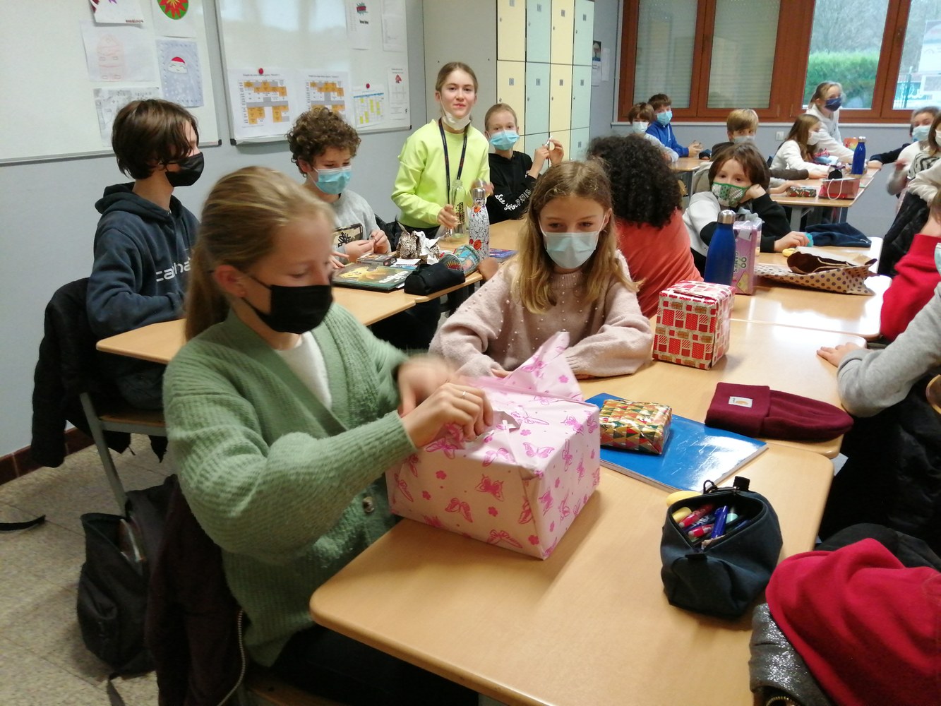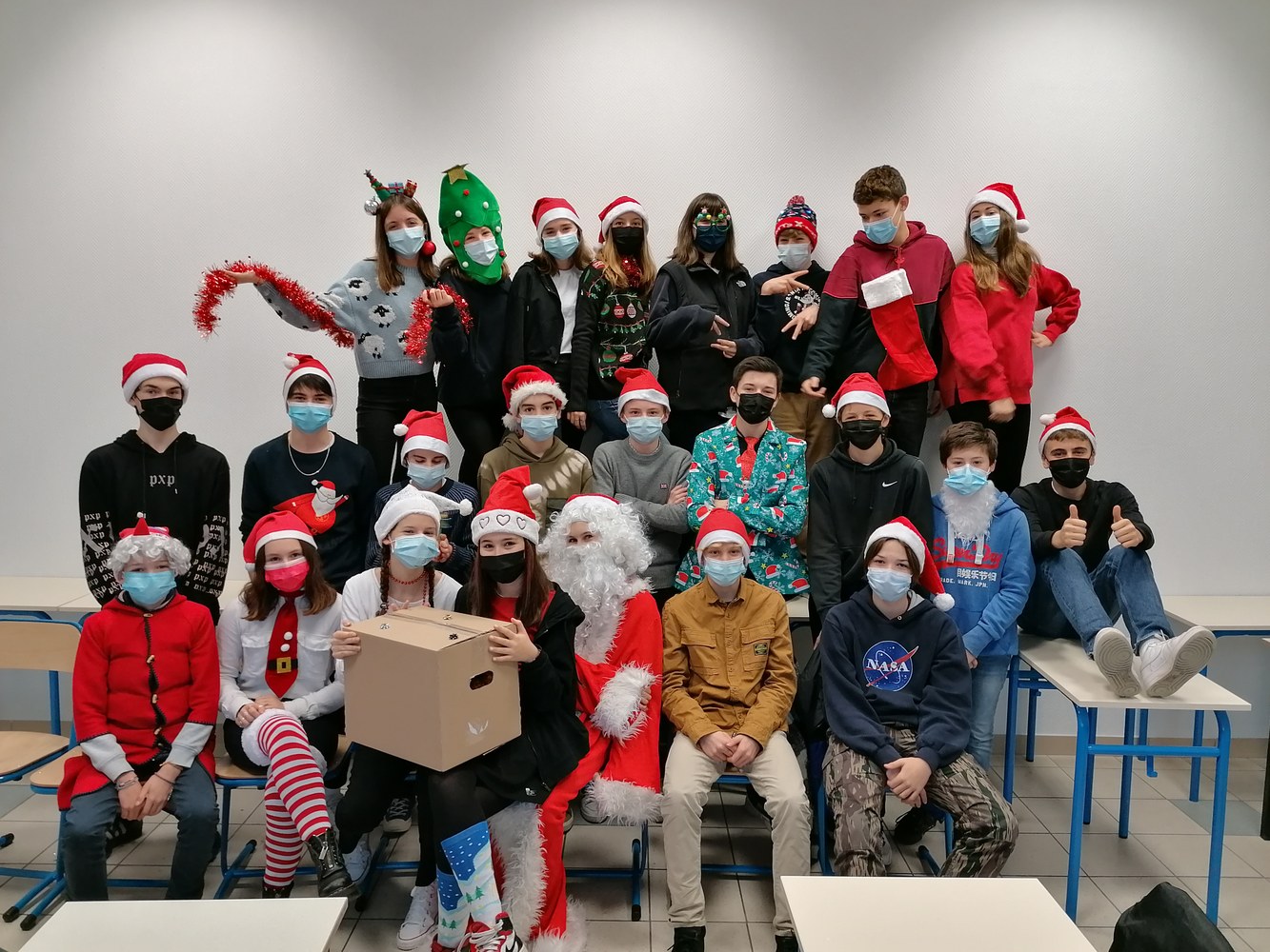 Echange de cadeaux, concours des pulls de Noël, célébration.